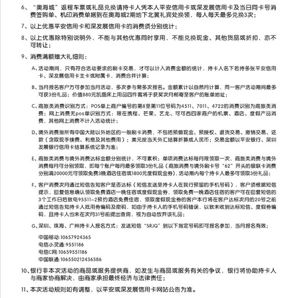 活动时间:2012年8月1日-2012年10月31日 活动主题:[其他]平安银行信用卡1元游香港 刷卡有礼赢酒店