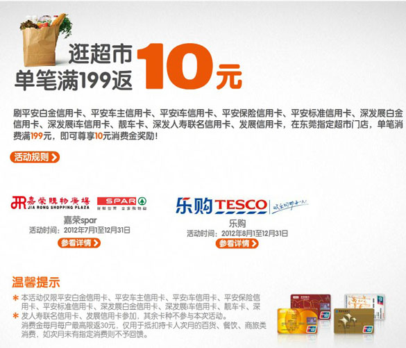 活动时间:2012年7月1日-2012年12月31日 活动主题:[东莞]深发银行信用卡逛嘉荣、乐购返利