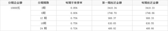 操作演示 申请时间:消费日后第二日至本期账单日前两个工作日之间,都可以进行申请。例如:假设您的账单日是每月25日,您的消费日为6月10日,则申请时间为6月12日至6月22日。 分期示例 假设您在6月10日消费了10000元,申请单笔消费分期,具体每期的手续费率和偿还金额如下表: 每期 应还金额=分期总金额÷分期期数(余数记入第一期应还金额)+分期总金额×每期手续费率 注:本网站公布的单笔分期 各期手续费率均为基准费率。我行针对分期业务实施差异化定价,具体费率将根据持卡人在本行用卡情况上下浮动。 温馨提示: 申请单笔消费分期付款,分期总金额最高不得超过100000元。申请核准后不得对已申请的分期期数、金额进行更改。 若持卡人申请提前清偿未偿付的分期余额, 经我行核准后,持卡人必须一次性支付未偿付的分期余额及手续费。 持卡人成功申请单笔消费分期后,不能对已申请的分期期数、金额进行更改;若申请单笔消费分期的原交易发生退货,分期交易。