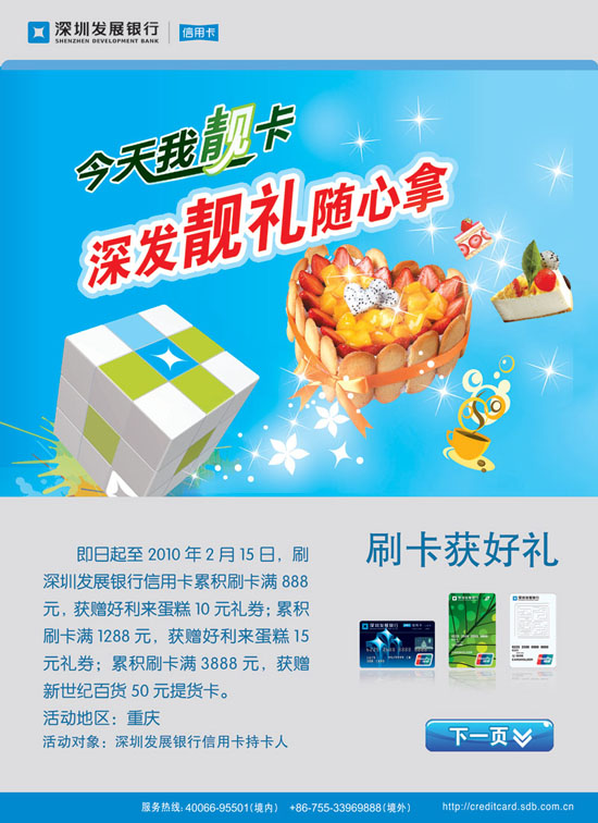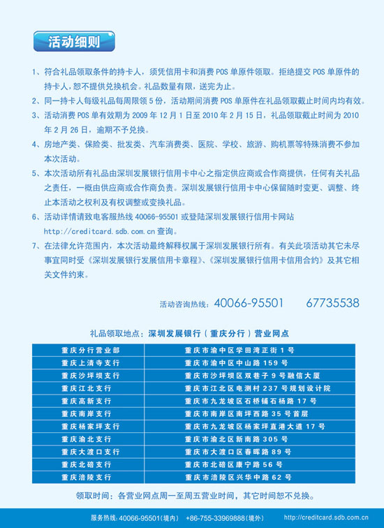 活动时间:即日起至2010年2月15日,【重庆地区】今天我靓卡,深发靓礼随心拿