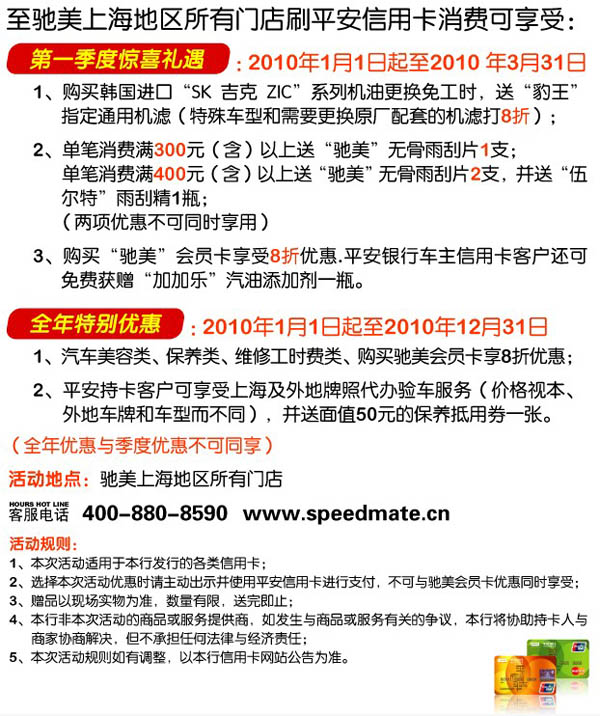 活动时间:即日起至2010年3月31日,[上海]平安信用卡,惊喜在驰美