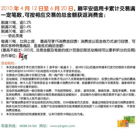 活动时间:即日起至2010年6月20日,平安信用卡 刷越多 返越多