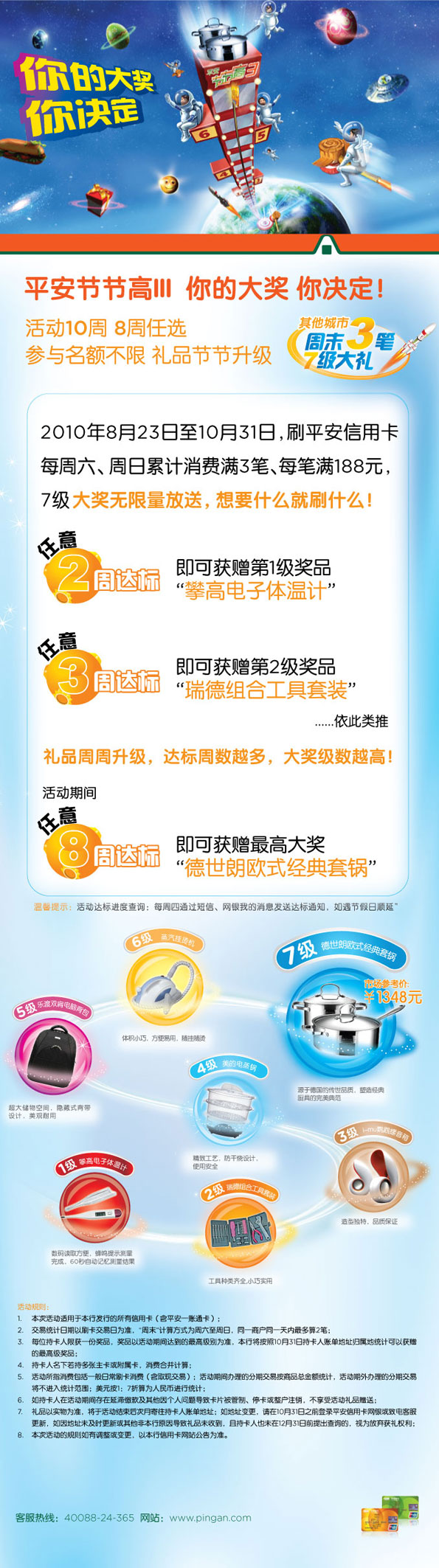 活动时间:即日起至2010年10月31日,[杭州]平安节节高 你的大奖 你决定!