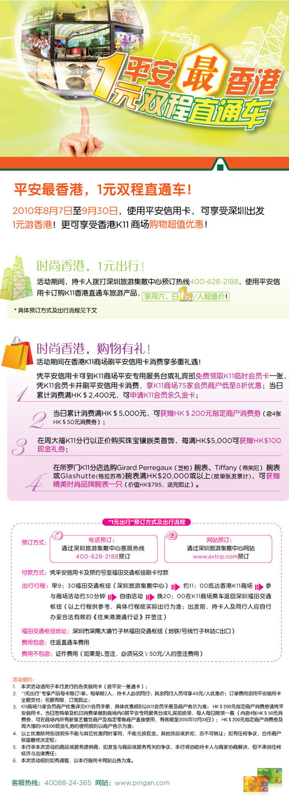 活动时间:即日起至2010年9月30日,[东莞、惠州]平安最香港,1元双程直通车!