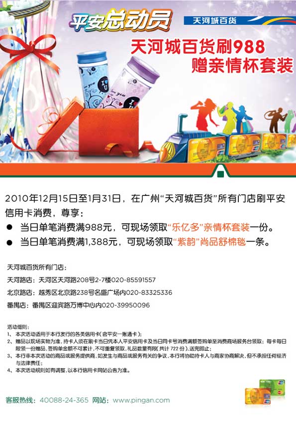活动时间:即日起至2011年1月31日,[广州]平安总动员,天河城百货刷988赠亲情杯套装