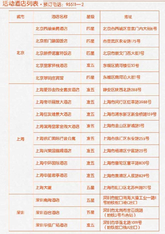 活动时间:即日起至2012年12月31日 活动主题:[全国]平安卡专利,星级酒店免费住!