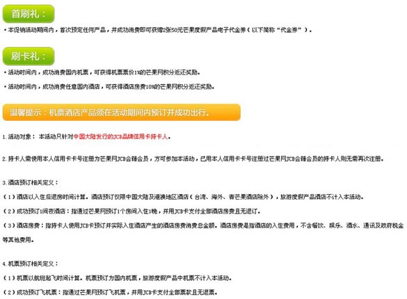 活动时间:即日起至2011年12月31日,[全国]浦发JCB信用卡专享 商旅出行 大礼“分”享!