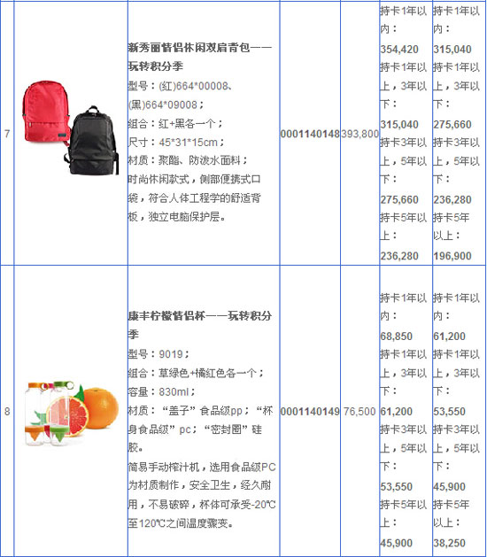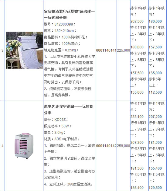 3、活动期间,每位客户仅享受一次兑换优惠(即限一件商品兑换优惠),如客户同一卡片兑换多件礼品则以原积分分值最高的礼品为准享受兑换优惠。