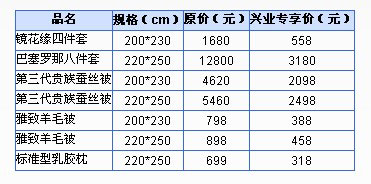 4、以下指定罗莱产品兴业银行信用卡客户可享特惠价(限宝龙特供):