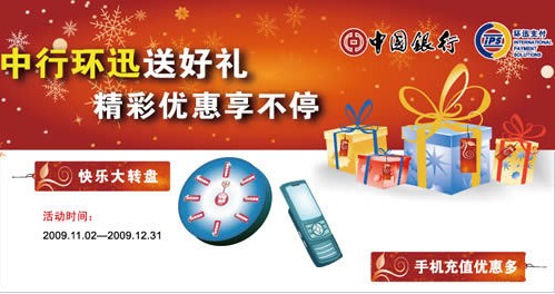 1.活动期间,凡使用环迅支付通道进行中国银行在线支付的用户,成功进行网上交易后即得到一个银行订单号,在相应活动页面中输入此银行订单号和交易金额就会得到一次抽奖机会。
