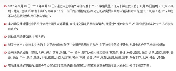 活动时间:即日起至2012年8月31日活动主题:[全国]中信银行网络办卡.最快一天拿卡